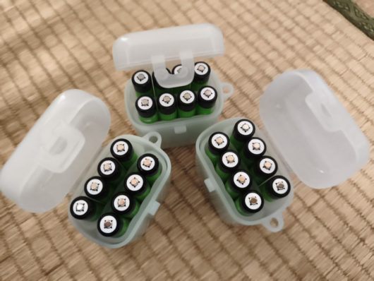 これだけ買うと、どうやってこの本数を保管するのか? という方もいると思うのですが、全国の100円ショップで売っている電池ケースの中に、単四8本・単三なら6本入る電池ケースが売られています。私はワッツで購入しましたがこのケースが3つあると24本が全て入ります。外出や旅行時にはこのケースを一つ(8本分)もっていけば、まず外出で困ることはないので個人的にはおすすめです。