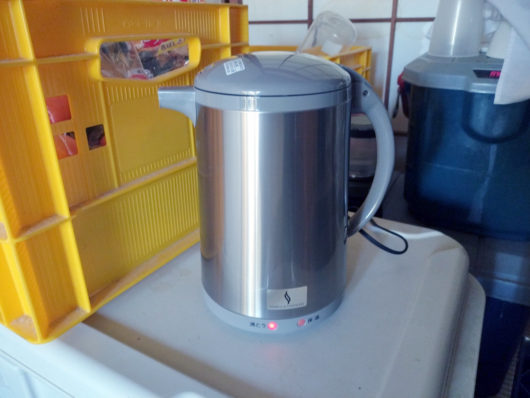 で、お店に入ったすぐのところにあったのが目指していたマルチポットが並べられていました。まずはサンプルを手に取ってその質感などを調べていたら、何故か本体が値引きされていて、1,990円(1.9L)が1,200円弱に下がっていました。これはと思って展示品といっしょに置かれていた在庫限りという箱の一つをカゴに入れ、レジに行こうと思いましたが、そこでちょっとした違和感を感じました。元々この製品に興味を持ったのは、一台10役というものの中に、本体を蒸し器にするための台があったのですが、手に取った品にはそれが無かったのです。展示品には確かに蒸し台が付いていたのですが、どうやら手に取った値引きされた品の方には蒸し台はないようでした。