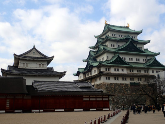 その後、まだ帰るには早いということで名古屋城を見に行きましたが、残念ながら天守閣は耐震基準に満たないとのことで現在は中に入ることはできませんでした。しかし、外から眺めるだけでもその大きさが伝わってきます。お掘りは一部をのぞき、内堀も外堀にも水は入っていませんでした。有料(大人500円)で本丸御殿に入場でき、新しくできたばかりの屋敷の内部をまるまる見学できます。彫刻や襖絵など、できたばかりでキラキラしていて、これはこれで十分楽しむことができました。他にも時間があれば行きたいところはあったのですが、今回は翌日仕事に行かなければならないということで、ここからはお昼およびおみやげ探しにお店を回って帰る手はずになりました。